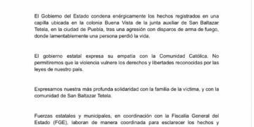 El Gobierno del Estado condena enérgicamente los hechos registrados en una capilla ubicada en la colonia Buena Vista de la...