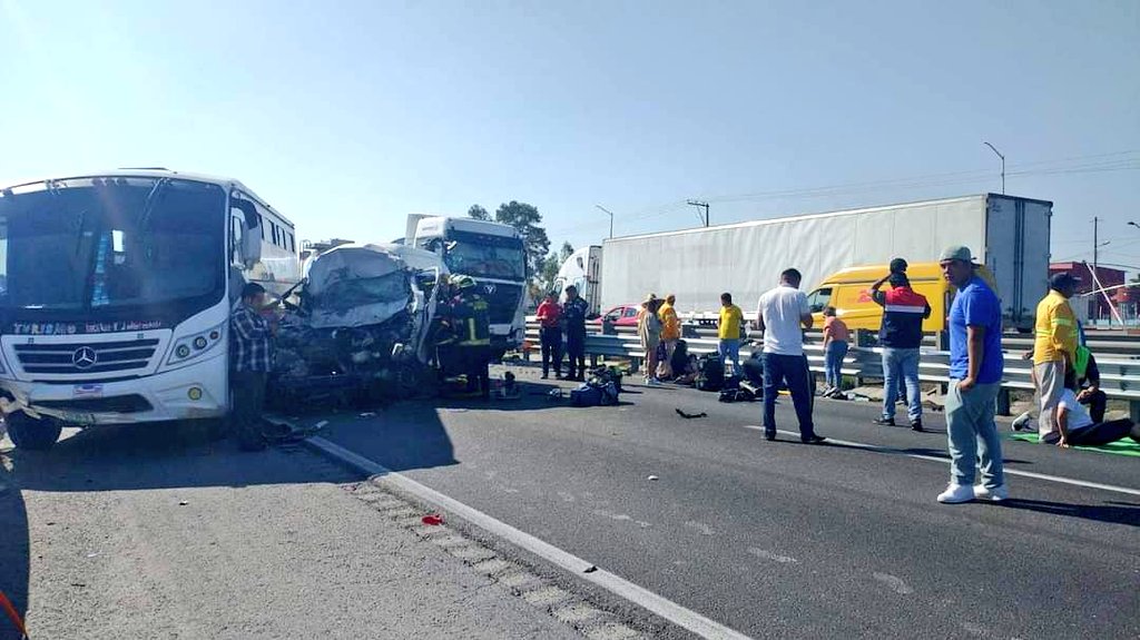 Un saldo de al menos 16 lesionados deja aparatoso accidente entre una combi, unidad tipo Van y microbús en el que viajaban alumnos y maestros de Teziutlan sobre la autopista México-Puebla altura del puente de Xonacatepec.