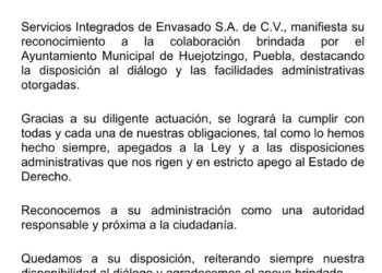 • ¡Final felíz! SIESA reconoce disposición del gobierno de Huejotzingo, encabezado por Roberto Solís, para resolver su situación legal