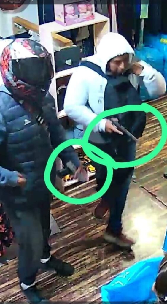 En las imágenes se puede apreciar como los dos amantes de lo ajeno cargan armas de fuego con las que amagaron a la empleada y la despojaron se dinero en efectivo de la venta del día.