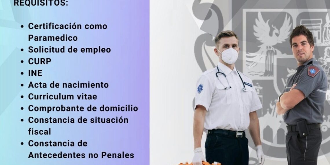 De acuerdo con la administración municipal, los interesados deberán contar con certificación como paramédicos y presentar documentación básica como solicitud de empleo, CURP, INE, acta de nacimiento, currículum vitae, comprobante de domicilio y constancia de situación fiscal.