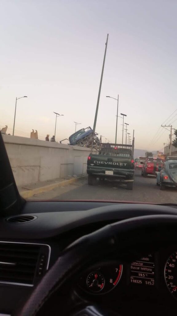 Una fuerte movilización de unidades de emergencias se registró por el fuerte accidente de una camioneta particular que choco contra el muro de contención y terminó volteada en el municipio de Huixcolotla.