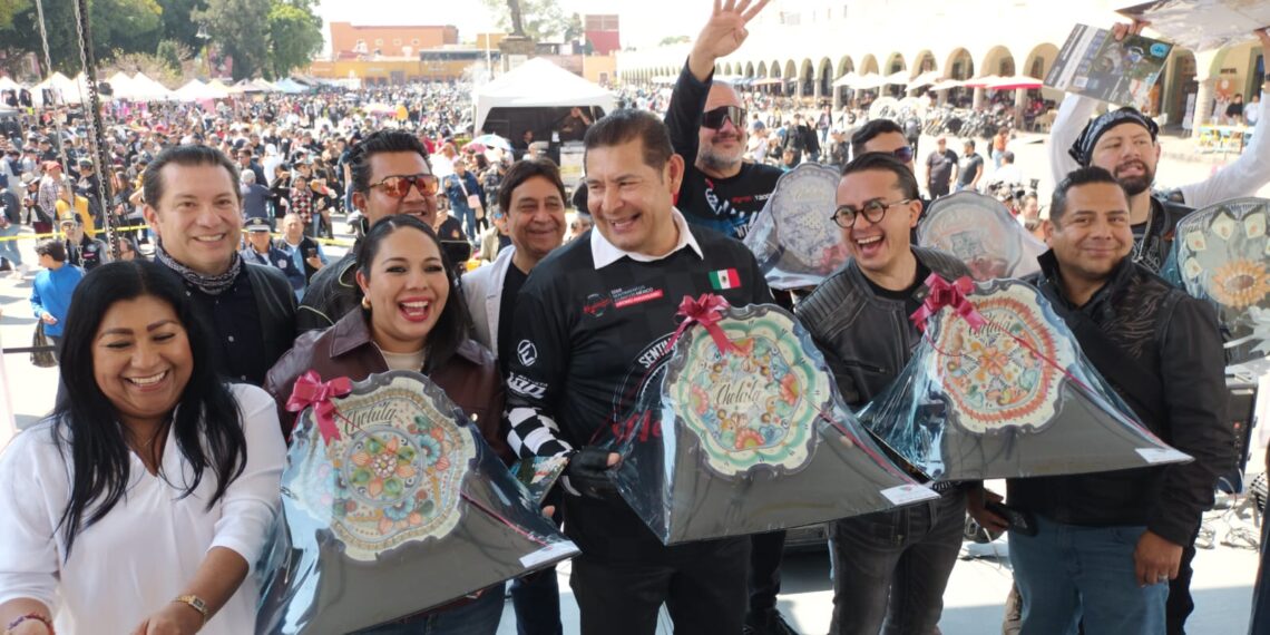 Con la Plaza de la Concordia como punto de encuentro, las autoridades arribaron acompañadas de más de 3 mil motocicletas, generando un ambiente biker y totalmente familiar en el corazón de San Pedro Cholula.