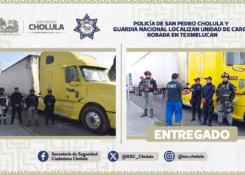 • Policía de San Pedro Cholula y Guardia Nacional localizan unidad de carga robada en Texmelucan