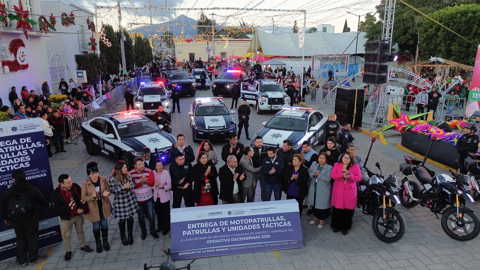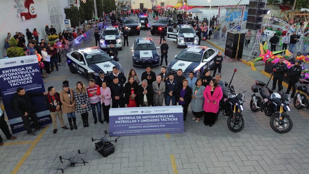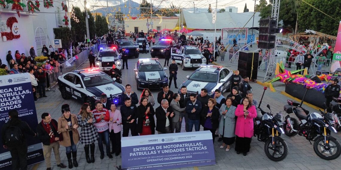Amozoc de Mota, Puebla a 16 de Diciembre de 2025.– Con el firme compromiso de fortalecer la seguridad pública y garantizar la tranquilidad de las familias Amozoquenses, el Ayuntamiento de Amozoc 2024-2027, bajo el liderazgo del Presidente Municipal Severiano de la Rosa Romero, realizó la entrega del nuevo parque vehicular a la Secretaría de Seguridad Ciudadana de Amozoc, esto con el objetivo de reforzar la presencia policial y mejorar la capacidad de respuesta en todo el municipio.