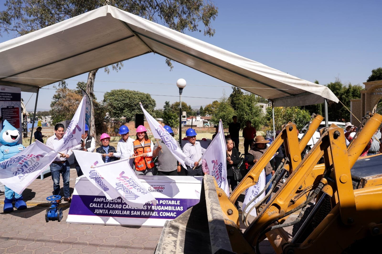 San Andrés Cholula, Puebla.– Con el propósito de asegurar un suministro equitativo, continuo y seguro de recursos hídricos para las familias sanandreseñas, la presidenta municipal, Lupita Cuautle Torres dio el banderazo de inicio a la ampliación de red de agua potable en la calle Lázaro Cárdenas de la junta auxiliar de San Rafael Comac.