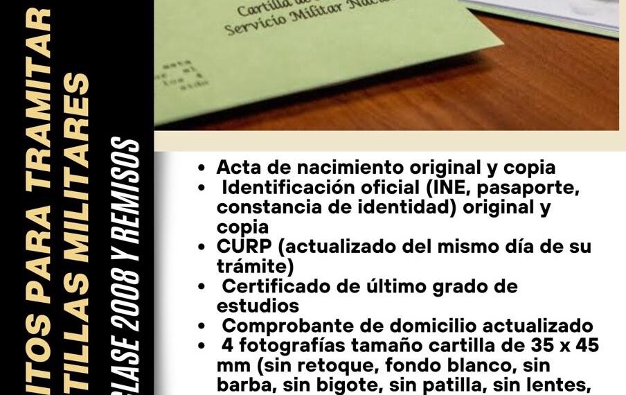 El Honorable Ayuntamiento de Quecholac, encabezado por la presidenta municipal María Guadalupe Martínez Gerardo, emitió una convocatoria dirigida a los jóvenes de la clase 2008 y remisos para que realicen el trámite de su cartilla del Servicio Militar Nacional.