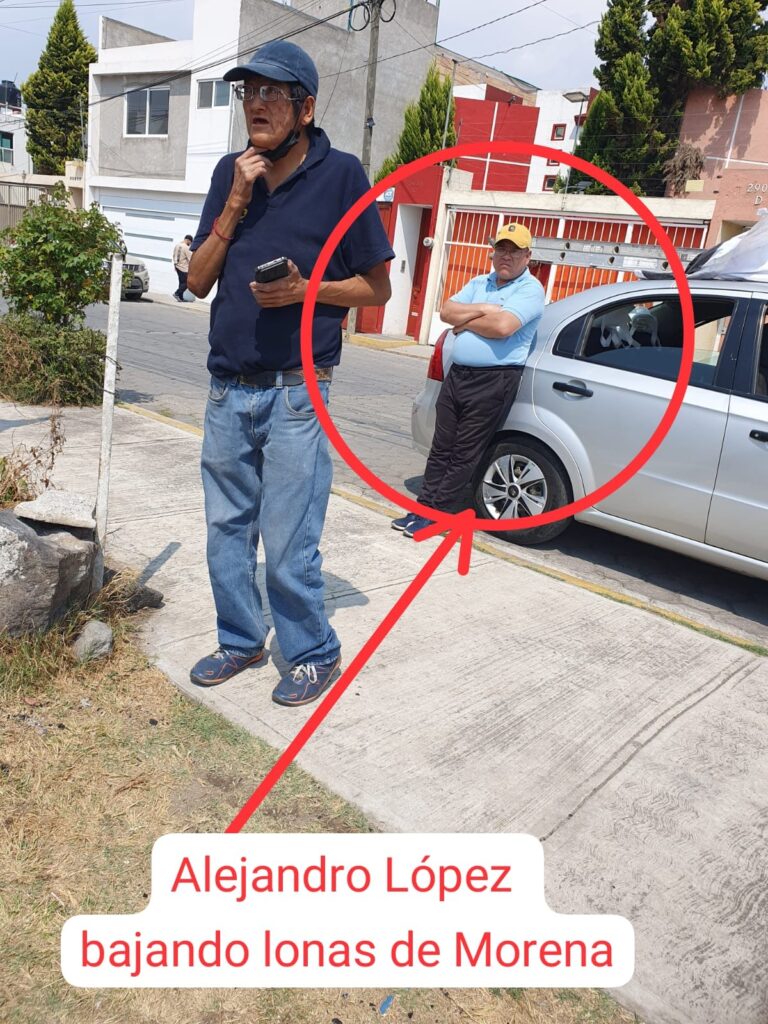 Por otro lado, exhibieron diversas fotografías y videos que la ciudadanía les ha hecho llegar, en los que se observan a individuos quitando y rompiendo las lonas de Tonantzin Fernández para luego colocar propaganda de Roxana Luna.