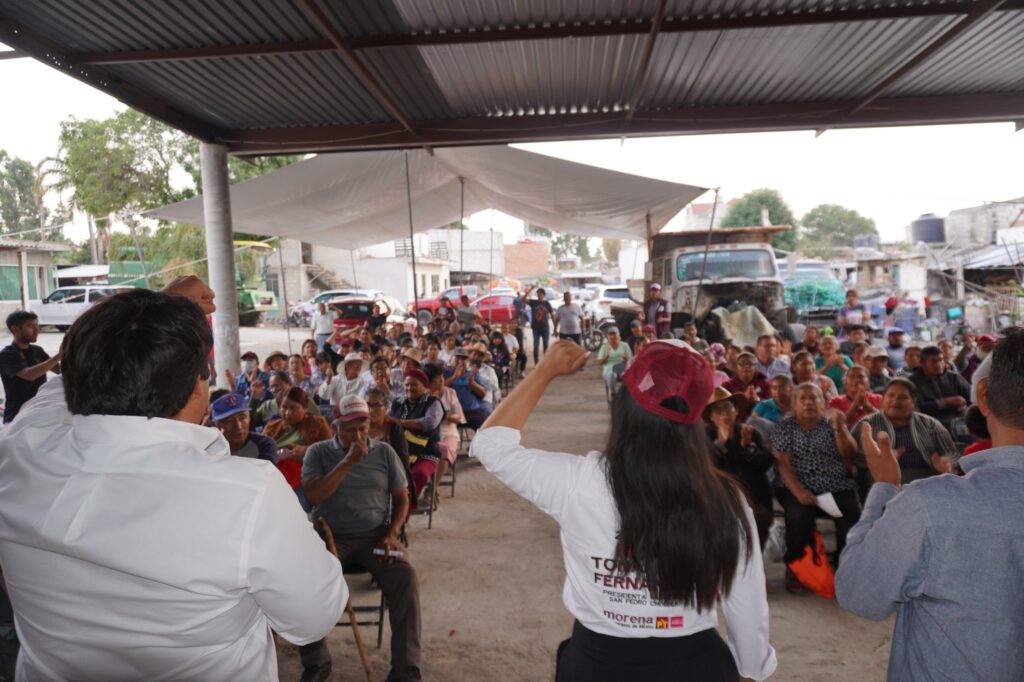 San Pedro Cholula, Pue.- La candidata de la coalición «Sigamos Haciendo Historia» a la presidencia municipal de San Pedro Cholula, Tonantzin Fernández, se reunió en San Juan Tlautla con campesinos de diversas juntas auxiliares del municipio, con el propósito de compartir ideas y estrechar lazos para trabajar de manera conjunta.