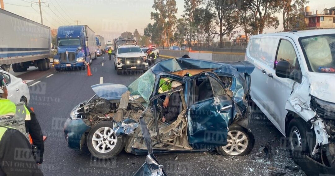 La mañana de este miércoles se registró una carambola en la autopista México–Puebla, a la altura de la zona conocida como Los Cochinitos, en dirección a Puebla, en la incorporación al Periférico.
