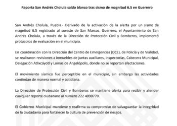 Read moreDetailsSan Andrés Cholula, Puebla.– Derivado de la activación de la alerta sísmica por un sismo de magnitud 6.5 registrado al...