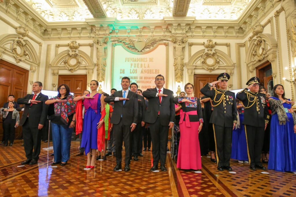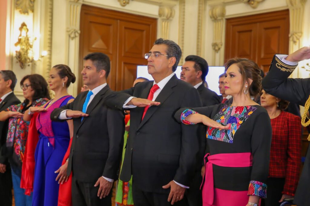 En compañía de la presidenta honoraria del Patronato del SEDIF, Gaby Bonilla y del alcalde capitalino, Eduardo Rivera Pérez, el mandatario arengó a las y los héroes nacionales como Miguel Hidalgo y Costilla, Josefa Ortiz de Domínguez, José María Morelos y Pavón y Leona Vicario.