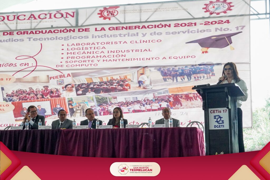 SAN MARTÍN TEXMELUCAN, PUE.- La Presidenta Municipal, Norma Layón asistió como madrina de la generación 2021 – 2024 del Centro de Estudios Tecnológicos Industriales y Servicios número 17, donde reconoció el trabajo de docentes, administrativos, padres de familia y alumnos.