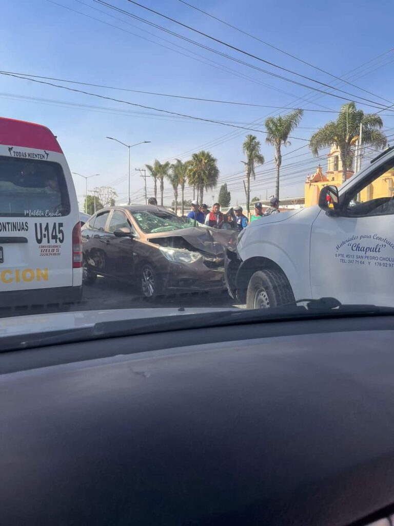 En San Juan Tlautla, se registró un fuerte choque entre un automóvil sedan y una camioneta, registrado cerca del Oxxo, generó alarma.