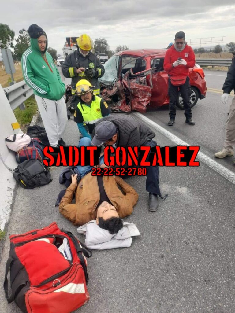 Choque frontal deja 4 personas prensadas sobre la Amozoc-Perote.