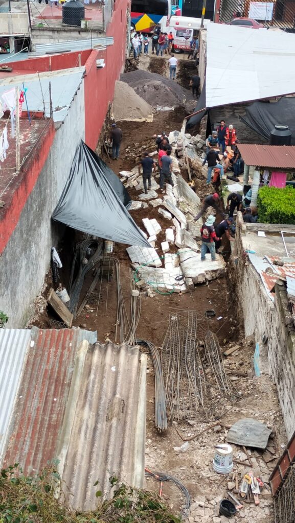 Una barda de aproximadamente 15 metros de largo termino colapsada, esto luego de que varios albañiles se encontraban escarbando para realizar un cimiento, esto en las inmediaciones del barrio de Chignaulingo en el municipio de Teziutlán.