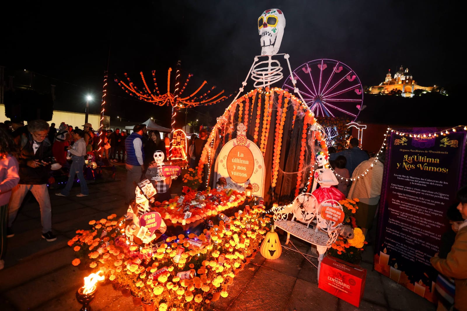 Entre las actividades que podrán disfrutar las familias destacan el recorrido de 13 catrinas monumentales, un foro artístico-cultural con presentaciones musicales, artísticas, teatrales y dancísticas, la experiencia sensorial “Cholula: entre la vida y la muerte”, proyecciones de cine en panteones, el carnaval “Un viaje al Mictlán”, la premier del documental “Regresar”, la participación de artistas de reconocimiento, la charla “Pases para la vida eterna, cultos y devociones fúnebres en la Cholula Novohispana, el concurso disfraces para mascotas y el corredor gastronómico y artesanal, entre otras grandes sorpresas.