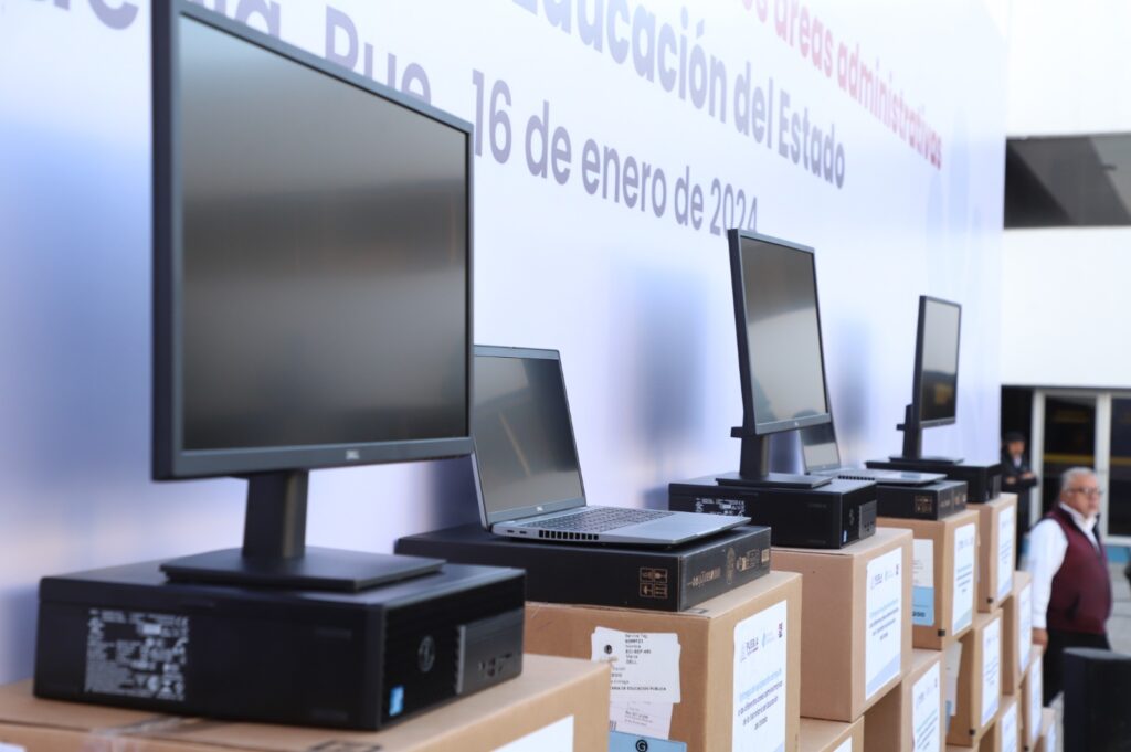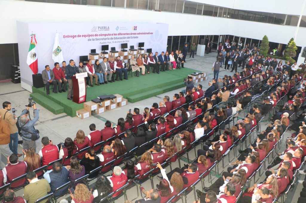 CIUDAD DE PUEBLA, Pue. – Como parte de la visión del gobierno estatal de impulsar la actualización y modernización de toda la administración pública, el titular del Ejecutivo, Sergio Salomón entregó mil 200 equipos de cómputo a las diferentes áreas administrativas de la Secretaría de Educación, las cuales forman parte de los 8 mil 391 que se estarán otorgando al servicio público.