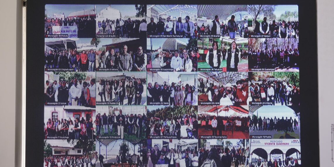 Por último, el secretario de Gobernación, Samuel Aguilar Pala, encabezó la transmisión simultánea con las 27 microrregiones del estado, donde delegadas y delegados de Bienestar informaron sobre la entrega de obras comunitarias en regiones como Xicotepec, Huauchinango, Sierra Norte, Teziutlán, Libres, Ciudad Serdán, Tecamachalco y Puebla capital, entre otras.