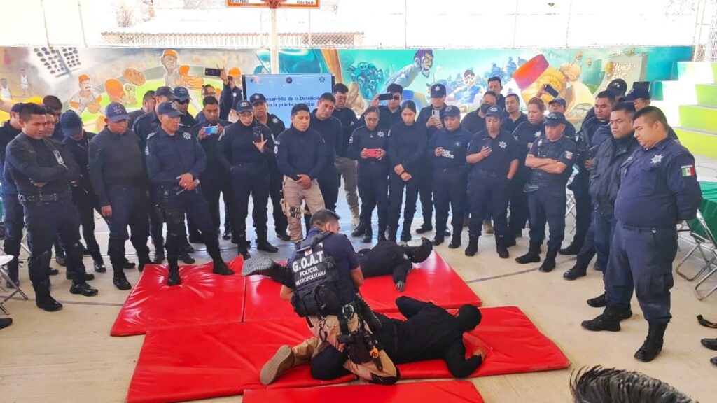 El objetivo de esa capacitación itinerante es potencializar las habilidades de las y los elementos en materia de empleo y medidas de seguridad de armas de fuego, uso de la fuerza en la detención, flagrancia, traslado, puesta a disposición y perspectiva de género.