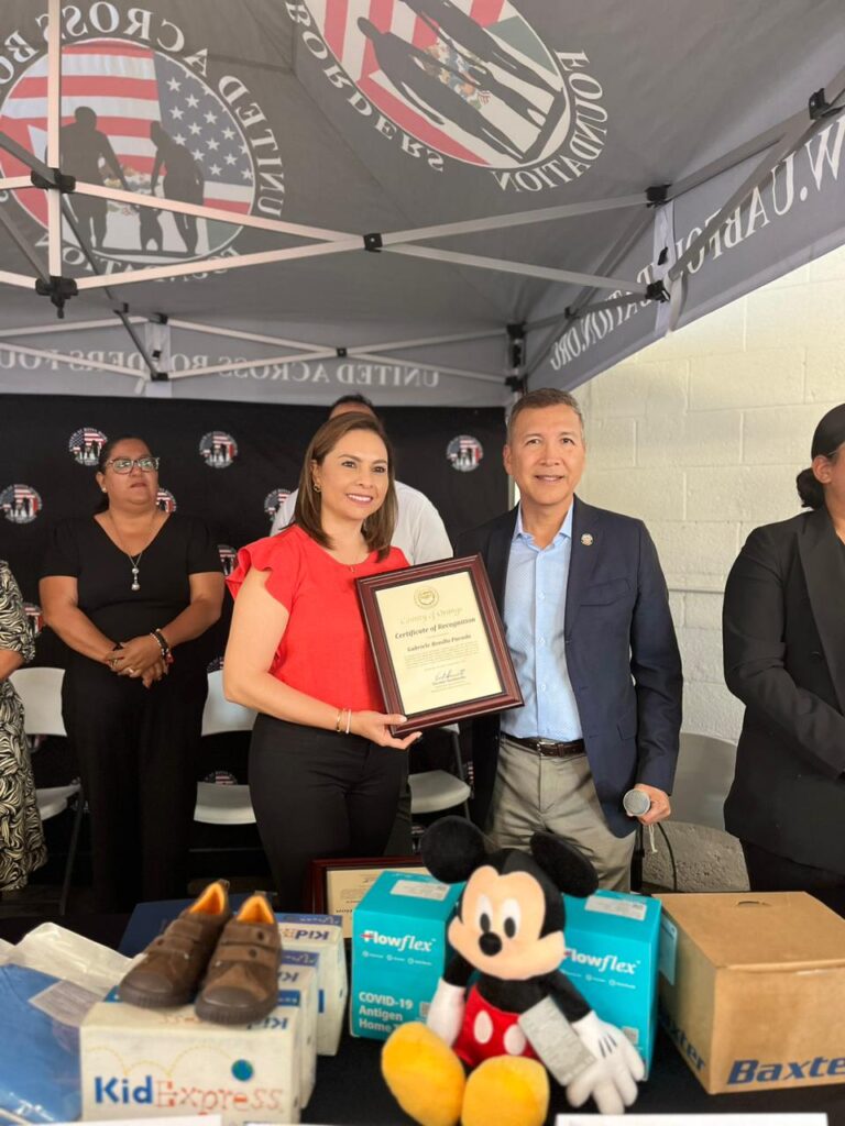 La presidenta honoraria del SEDIF, Gaby Bonilla recibió un reconocimiento de parte del Country of Orange.