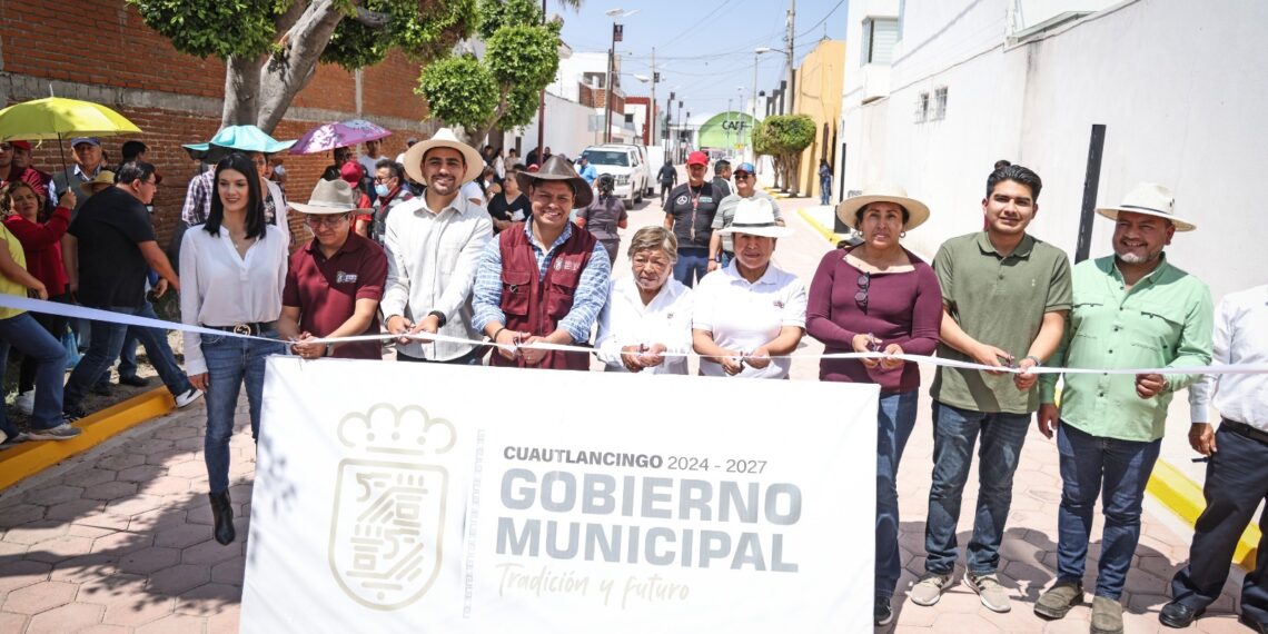 El presidente municipal de Cuautlancingo, Omar Muñoz, entregó la obra de pavimentación con adoquín en la calle Las Flores, entre Avenida Mixteca y fin de calle, en la inspectoría de la Reserva Territorial Quetzalcóatl, acción que mejora la movilidad y seguridad de las familias que habitan en esta zona.