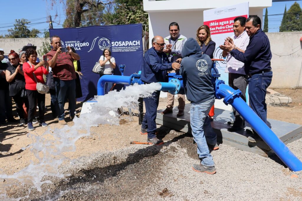 Acompañada de Eric Mendoza, subdirector técnico de la Comisión Nacional de Agua (CONAGUA Puebla), del Director General del Organismo Operador de los Servicios de Agua Potable y Alcantarillado del Municipio de San Pedro Cholula (SOSAPACH), Miguel Vega, así como del presidente auxiliar de Santiago Momoxpan, Joaquín Mexicano Michimani; Angon Silva informó que estos trabajos garantizan el acceso al agua potable, como un derecho fundamental y una necesidad básica para la ciudadanía.