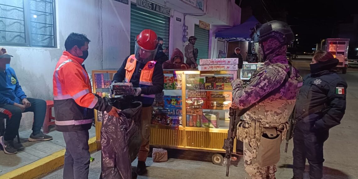 El operativo se realizó en distintas calles y puestos ambulantes con el propósito de prevenir riesgos durante la temporada decembrina, cuando aumenta la venta y el uso clandestino de estos artefactos explosivos.