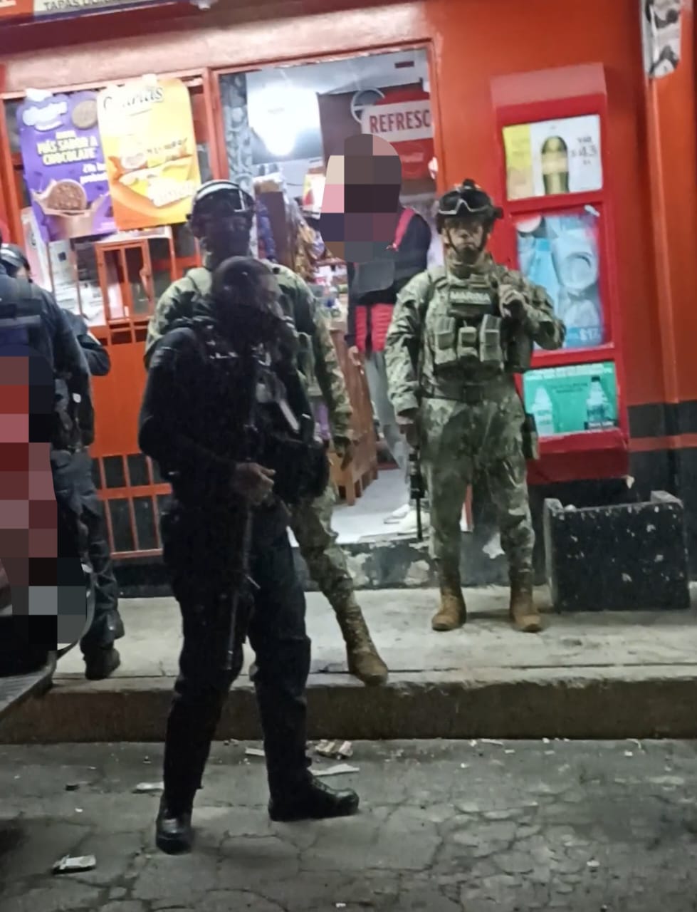 “Hace un par de noches, varios vecinos nos encontrábamos afueras de nuestro domicilio en la unidad Doña Marí, lugar donde llegaron varias patrullas de la policía municipal exigiendo, intimidando, e incluso con amenazas, ahí los policías acompañados de los marinos, de manera grosera nos dijeron que teníamos que entrar a nuestros domicilios que ya no eran horas para estar en vía pública”, denuncian los ciudadanos.