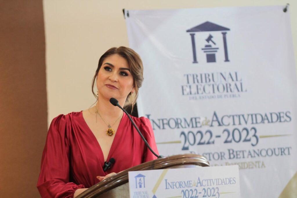 En sesión solemne La Magistrada Presidenta del Tribunal Electoral del Estado de Puebla(TEEP) , Idamis Pastor Betancourt, rindió su primer informe de actividades al frente del Tribunal en el que destacó las directrices de imparcialidad y la justicia.