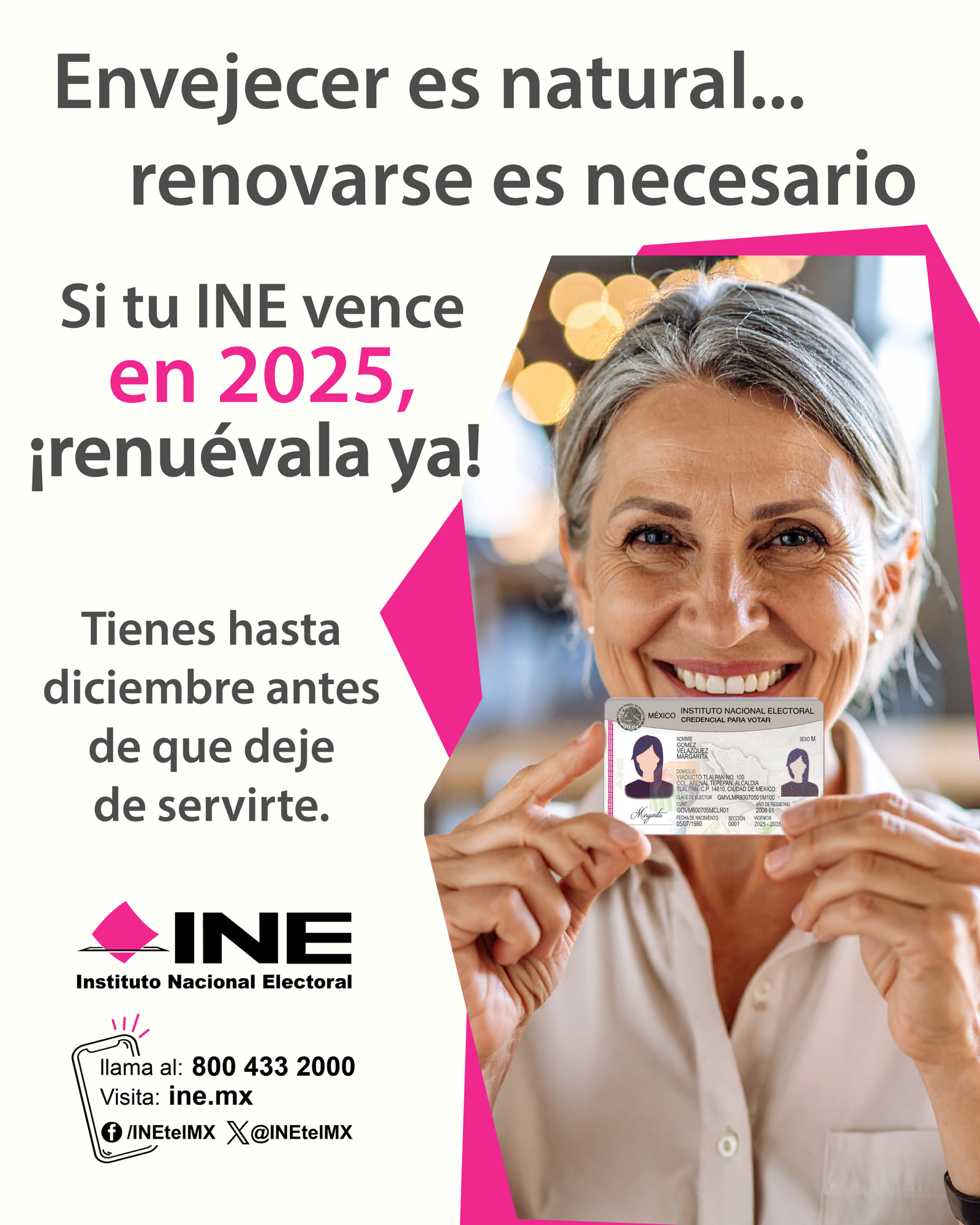 La Lic. Nadia Estrada Palacios, Vocal Ejecutiva de la 05 Junta Distrital Ejecutiva en Puebla, hizo un llamado a las personas que aun tengan una Credencial para Votar con año de vigencia el 2025 para que acudan a cualquier Módulo del INE antes del fin de este año, porque éstas dejarán de servirles como identificación y para votar a partir del 1 de enero de 2026.
