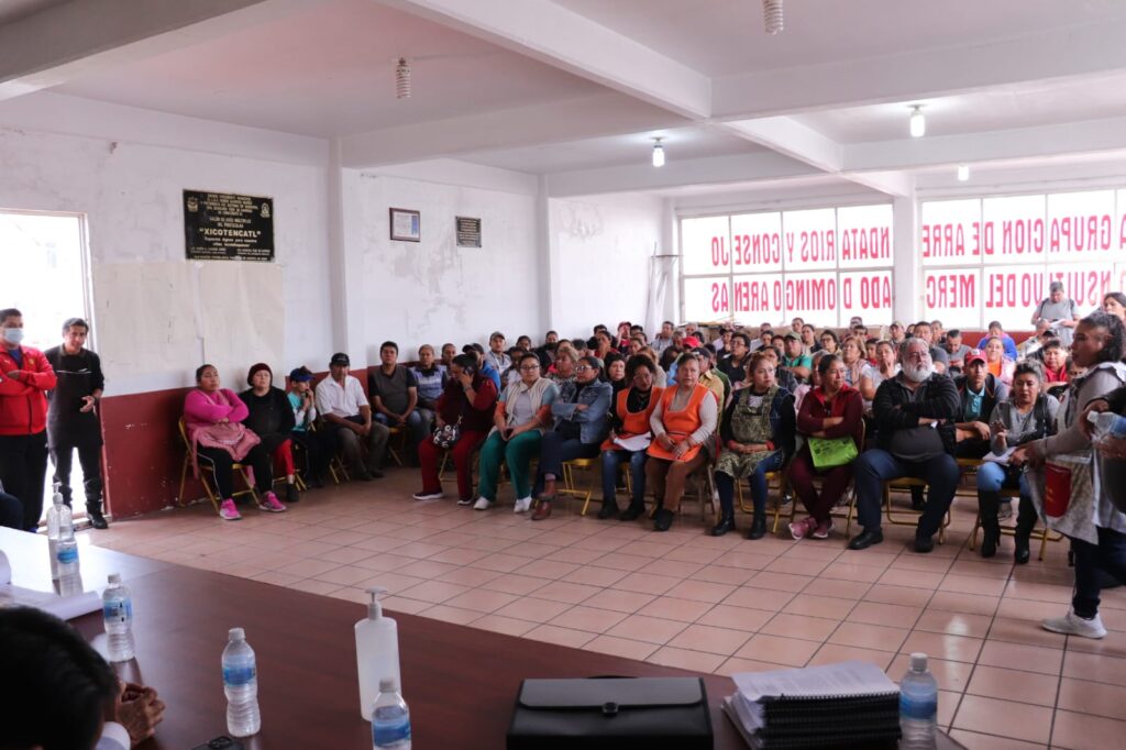 El Secretario de Fomento Económico, Turismo y Cultura del Ayuntamiento Texmeluquense, Jaime Aurioles encabezó la asamblea con comerciantes del Mercado Domingo Arenas de esta demarcación.