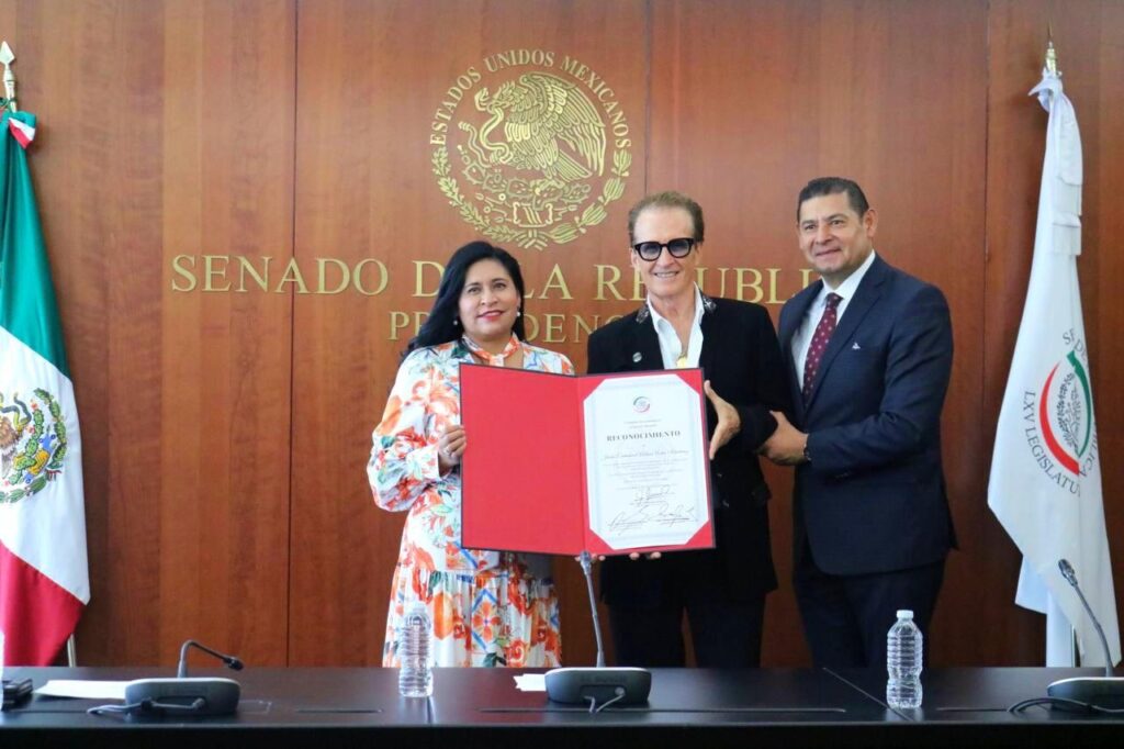 Ciudad de México. Por sus más de 45 años de trayectoria artística y por 2 décadas dedicadas a la labor ambiental, el cantante Emmanuel fue reconocido en el Senado de la República a instancia del legislador poblano Alejandro Armenta.