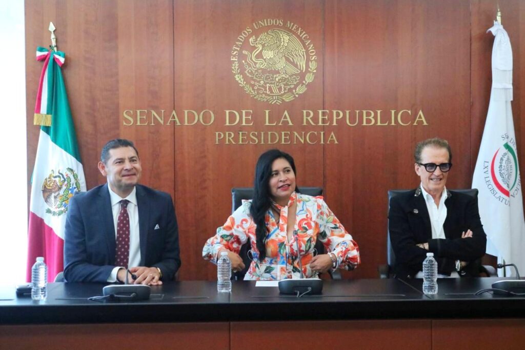 En compañía de su esposa Mercedes Alemán y de sus hijos Giovanna Martinique y Alexander Acha, el cantante mexicano fue recibido por los integrantes de la Mesa Directiva, presidida por la senadora Ana Lilia Rivera, además del senador de Morena Alejandro Armenta, quienes reconocieron su aportación a la música a través de canciones que forman parte de la historia de las y los mexicanos.