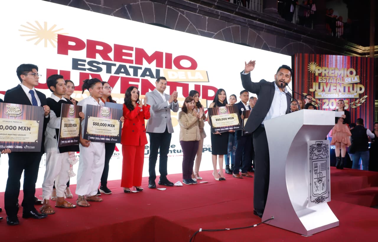 Con una noche llena de alegría, arte y entusiasmo juvenil, el Gobierno del Estado de Puebla, celebró el Premio Estatal de la Juventud “Vicente Suárez” 2025, en el histórico San Pedro Museo de Arte. Bajo la visión de la presidenta Claudia Sheinbaum y el enfoque del humanismo mexicano, este galardón reconoce a jóvenes que destacan en áreas clave como derechos humanos, innovación, cultura, inclusión, emprendimiento y más.