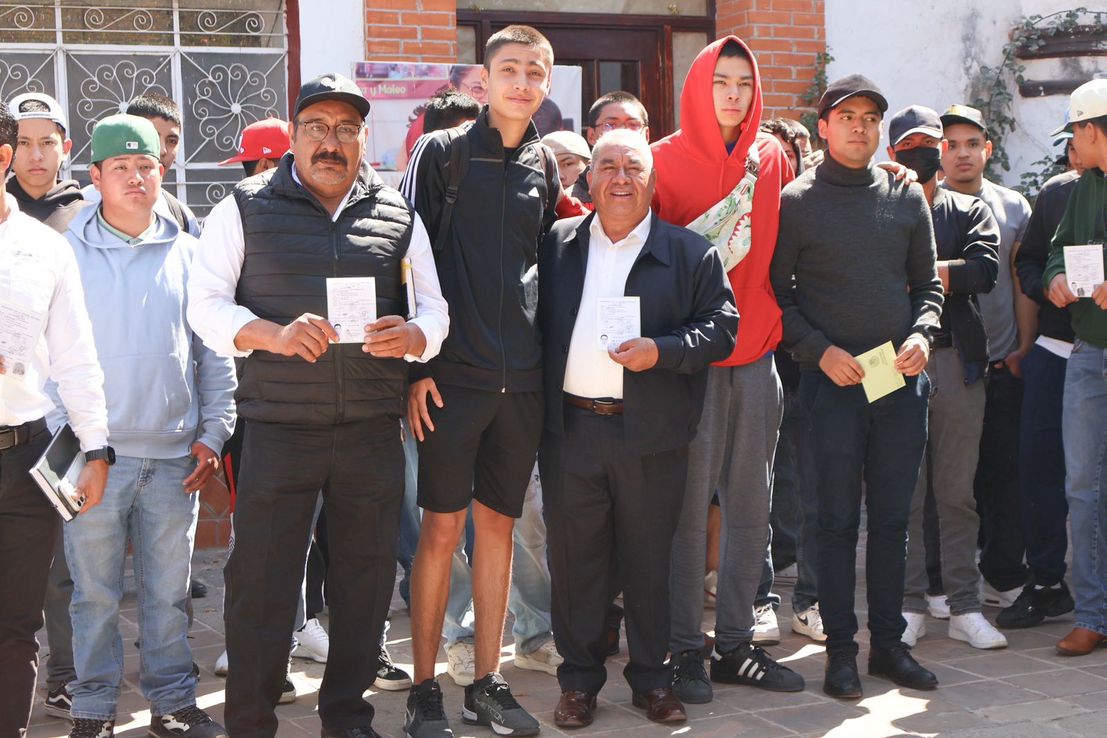 Posteriormente, en las instalaciones de Casa Colorada, el presidente municipal encabezó la entrega de 60 cartillas liberadas del Servicio Militar Nacional a conscriptos de la clase 2008 y remisos, quienes realizaron su trámite en tiempo y forma.