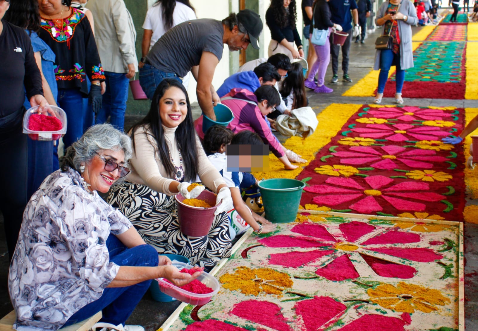 Encabeza Tonantzin Fernández la colocación de la alfombra monumental en el Portal Guerrero