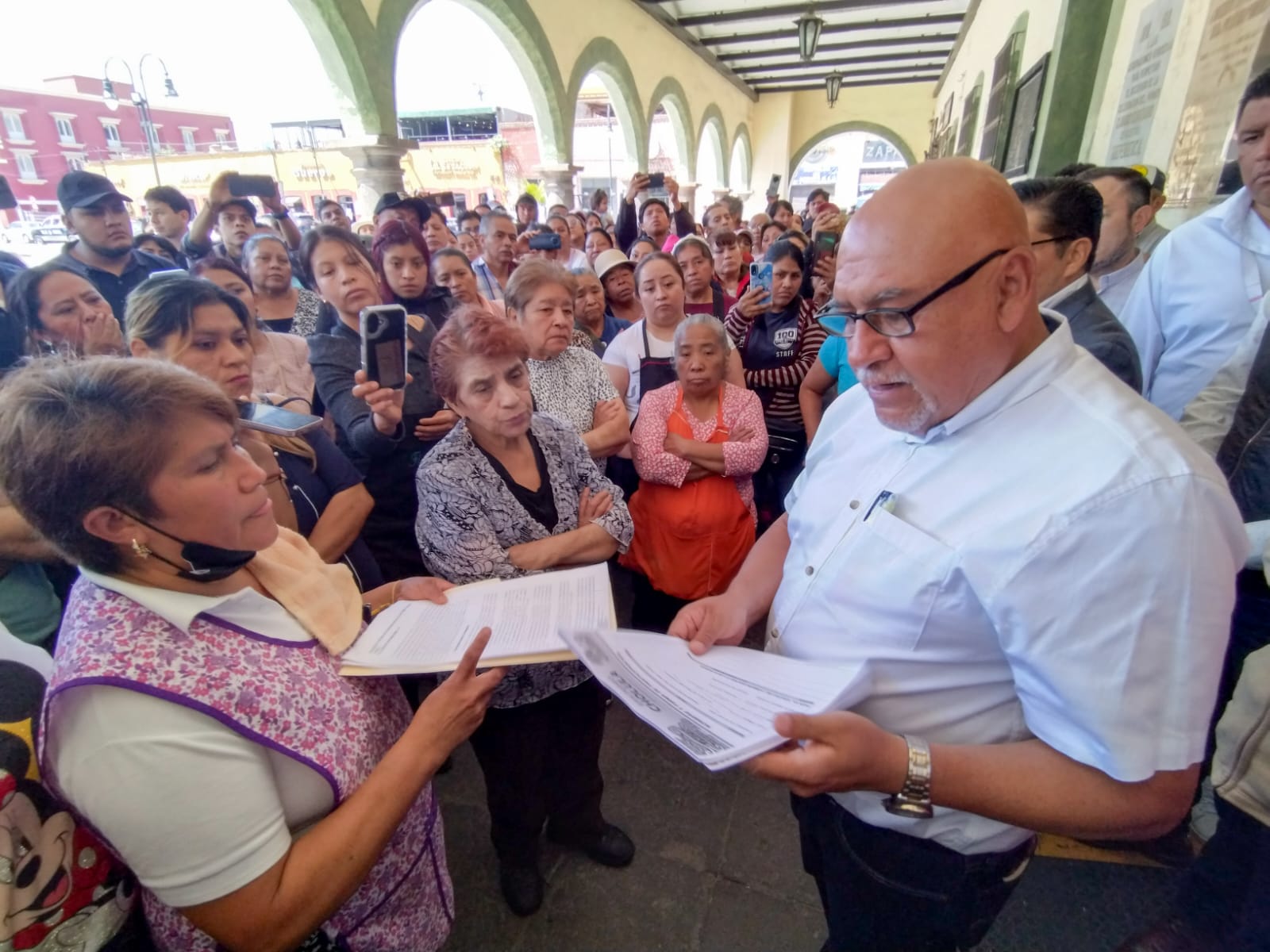 San Pedro Cholula, Puebla. Comerciantes del Mercado Cosme del Razo acudieron de manera respetuosa a la presidencia municipal de San Pedro Cholula para entregar el pliego petitorio acordado durante la mesa de diálogo celebrada el pasado lunes 21 de julio.