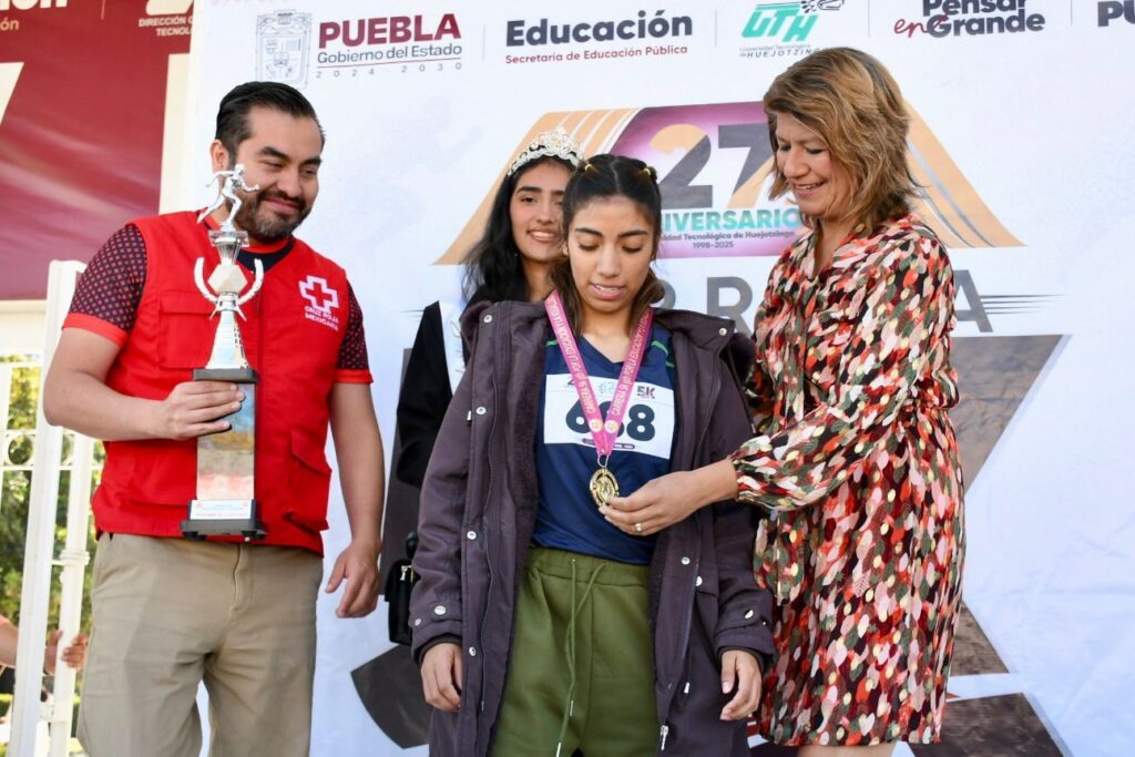 Dicha carrera se realizó en Santa Ana Xalmimilulco, junta auxiliar de Huejotzingo, donde se localiza la UTH. Las y los ganadores fueron: en la modalidad femenil, el primer lugar lo obtuvo Marisol Lomán Zárate, de Ingeniería Mecánica; segundo lugar, Bárbara Salas Cruz, de Ingeniería Industrial; tercer lugar, Yara Getsemani Hernández Olivares, de Ingeniería Industrial; cuarto lugar, Karla Ivette Fierro Montes, de la Licenciatura en Innovación de Negocios y Mercadotecnia; quinto lugar, Araceli Palacios Sánchez, de la Ingeniería en Diseño Textil y Moda.