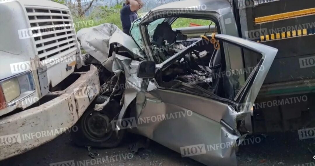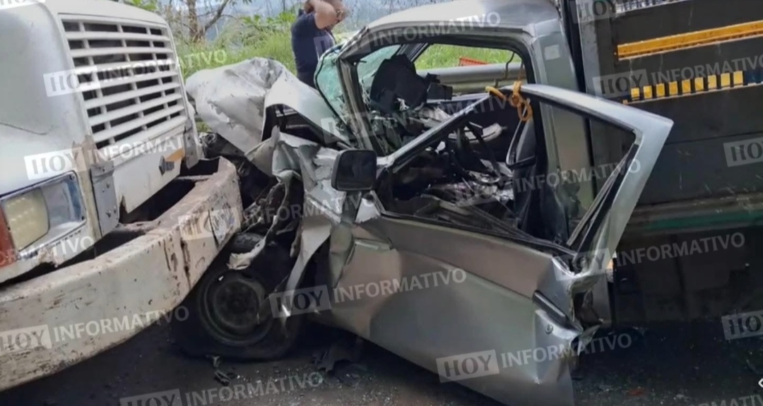 Hace unos minutos se registró un accidente entre una camioneta tipo estaquitas y un camión de volteo sobre la Carretera Federal México–Tuxpan, en el tramo de Xicotepec hacia La Ceiba.