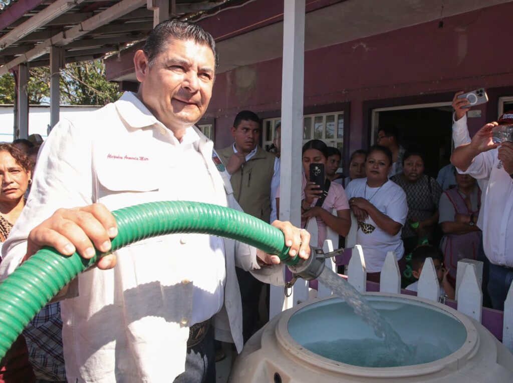XICOTEPEC DE JUÁREZ, Pue.- Con el objetivo de supervisar la entrega de 500 tinacos donados por PEMEX, así como el avance de las obras destinadas a la recuperación de las familias afectadas por las lluvias torrenciales del año pasado, el gobernador Alejandro Armenta recorrió por quinta ocasión, desde que inició la administración estatal, las comunidades de La Ceiba y Gilberto Camacho “La Junta”, de la microrregión 1 en la Sierra Norte.