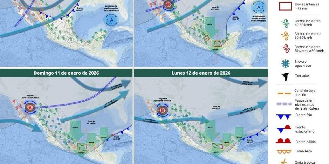 CIUDAD DE PUEBLA, Pue.- El Gobierno de Puebla, a través de la Coordinación General de Protección Civil y Gestión del Riesgo de Desastres informa a la población que, de acuerdo con el pronóstico del Servicio Meteorológico Nacional, este sábado 10 y domingo 11 de enero se pronostican lluvias de muy fuertes a intensas en el estado, especialmente en la Sierra Nororiental y el Valle de Serdán, debido a la interacción del Frente Frío Número 27 con otros sistemas atmosféricos.