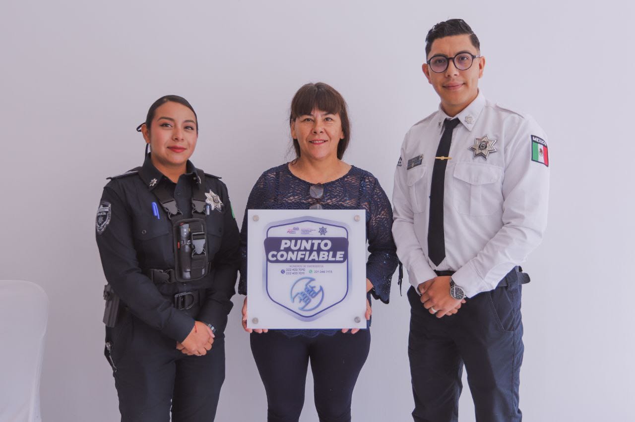 San Andrés Cholula, Puebla. – Con el objetivo de reducir riesgos delictivos y promover entornos más seguros en establecimientos comerciales, la presidenta Lupita Cuautle Torres, entregó el distintivo “Punto Confiable” a 25 comercios del municipio. Iniciativa implementada por la Secretaría de Seguridad Pública y Protección Ciudadana (SSPPC).