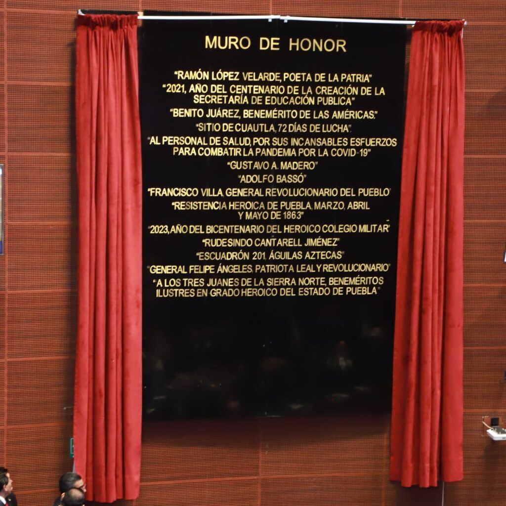 Ciudad de México.- En una ceremonía solemne en el Senado de la República fue develada la inscripción con letras doradas en el Muro de Honor, la leyenda: «A los 3 Juanes de la Sierra Norte, Beneméritos Ilustres en grado de Heroico del Estado de Puebla».