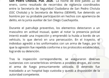 • SSC Cholula detiene a conductor y recupera vehículo con reporte de robo