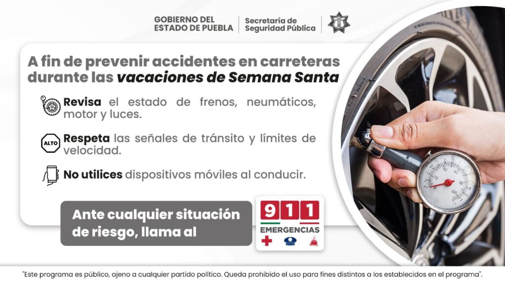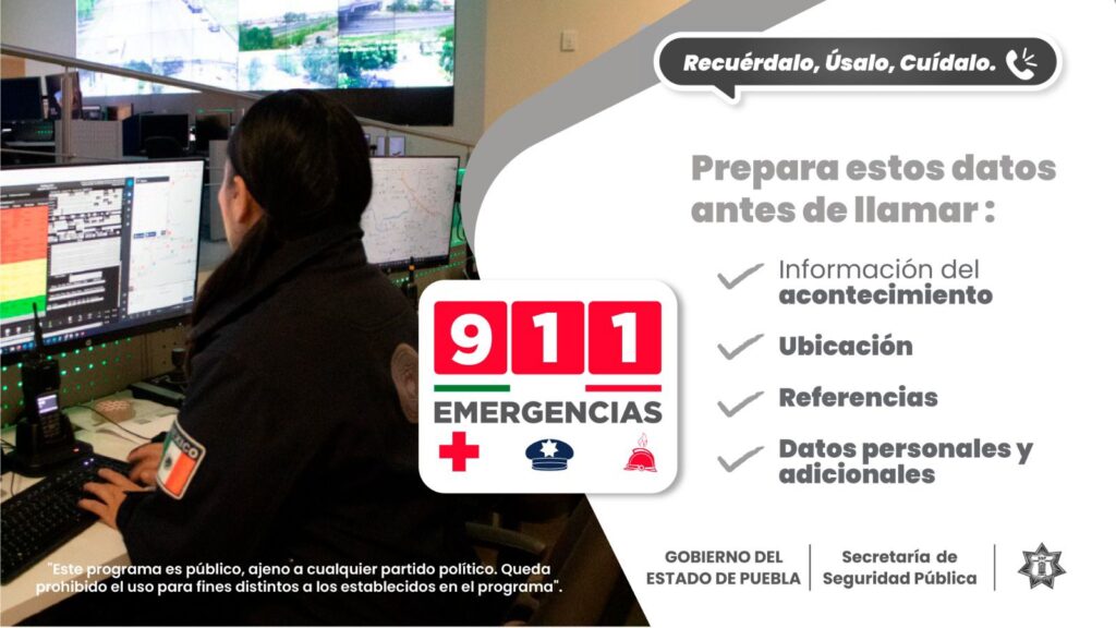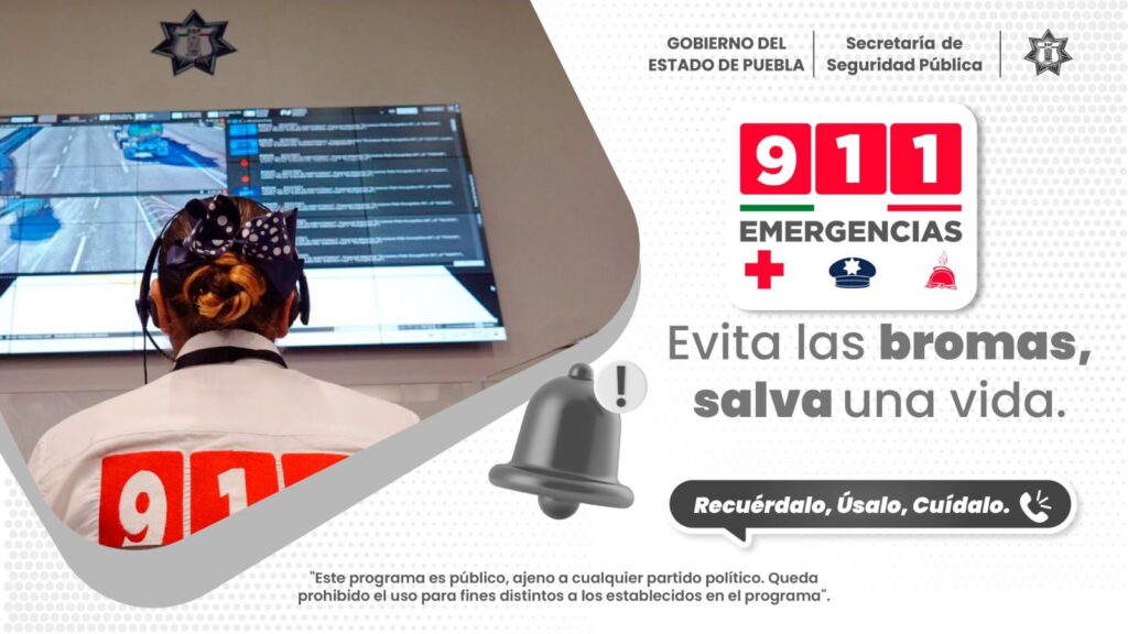CIUDAD DE PUEBLA, Pue.- La Secretaría de Seguridad Pública (SSP) exhorta a la sociedad a utilizar de manera responsable el número de emergencias 9-1-1, durante la temporada vacacional de Semana Santa.