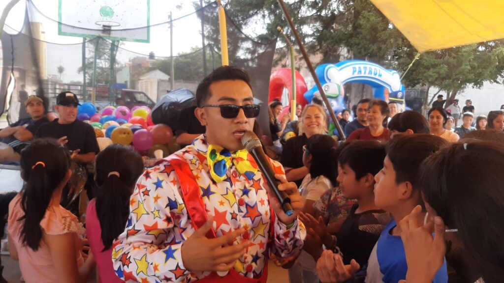 El evento se realizó en la cancha de básquetbol de la colonia Petroleros, donde se concentraron niños y niñas acompañados de sus familias para disfrutar también de inflables, brincolines y un espectáculo del payaso Sponch.