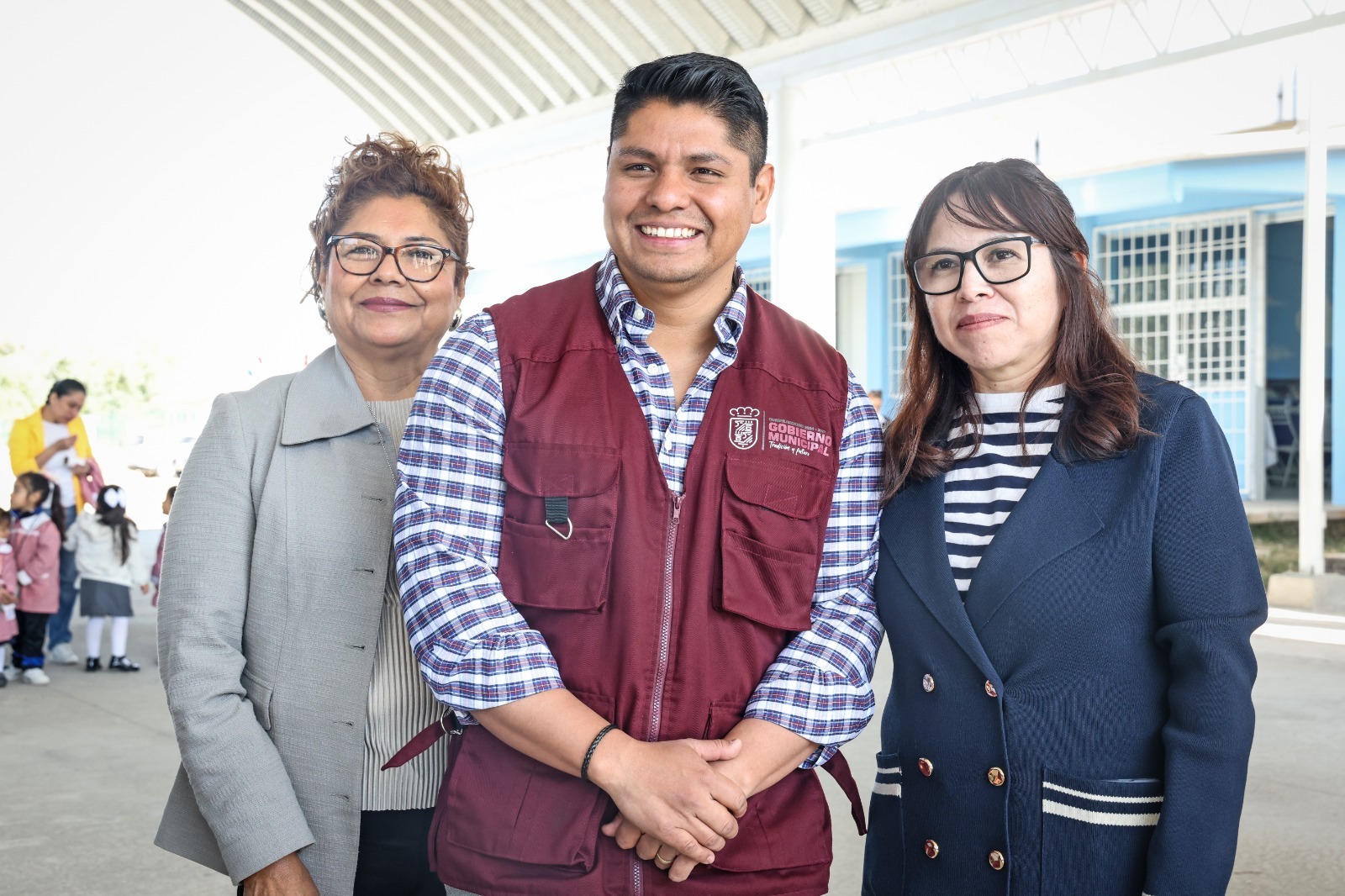 La directora general de la Unidad Educativa Frida Kahlo, Luz María Gómez Palacios, y la directora del preescolar, Esperanza Nieto Garduño, coincidieron en que el nuevo techado permitirá fortalecer el aprendizaje y el desarrollo integral de las y los alumnos en un entorno digno y saludable.