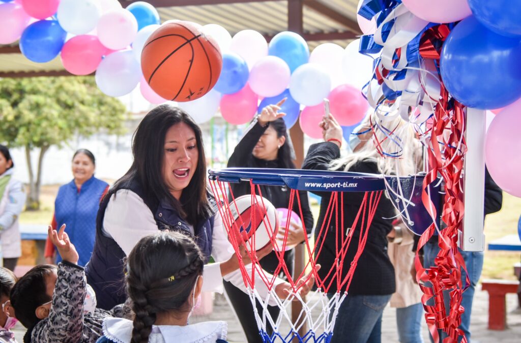 Al entregar una base móvil mini y la remodelación del tablero de básquetbol ubicados al interior de la institución, Rocio Simón afirmó que una de las principales ocupaciones de la sociedad debe ser la procuración del correcto desarrollo de los más pequeños.