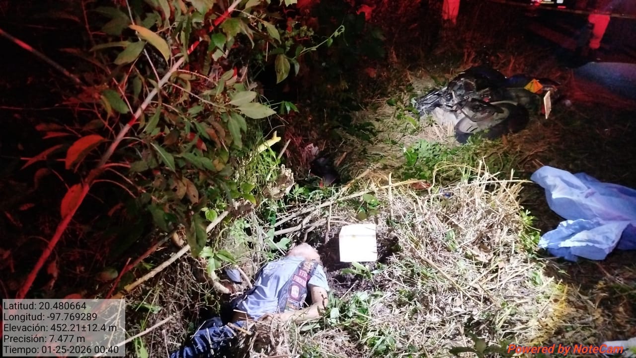 La víctima fue identificada como Efraín Gallegos López, de 25 años de edad, quien conducía una motocicleta Pulsar modelo 2024, color negro. Tenía su domicilio en El Ejido Carrizal Viejo, municipio de Pantepec, y fue reconocido en el lugar por su madre, Irene López Canales, de 55 años.